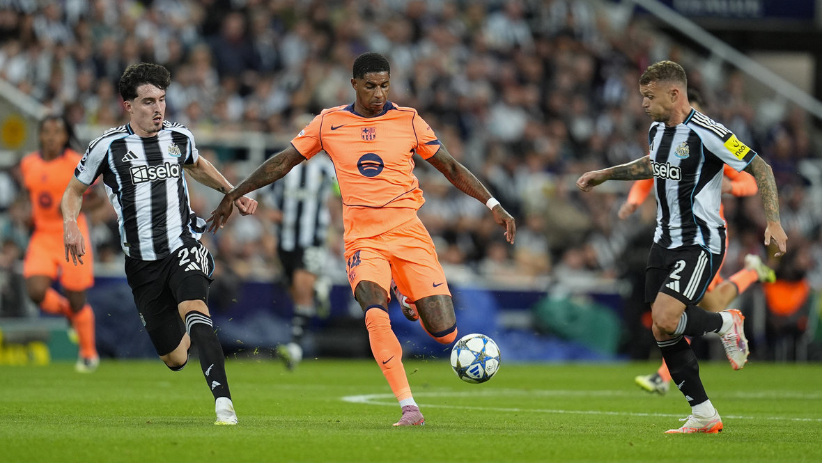 «Ньюкасл» же выдал огненный стартовый отрезок, и лишь Жоан Гарсия спас «Барселону» от серьезных неприятностей. На седьмой минуте он нейтрализовал выход Харви Барнса один на один — правда, из офсайда. А чуть позже совершил полноценное спасение, в стиле осьминога не дав тому же Барнсу отправить мяч в ближний угол. После 30-й минуты темп «Ньюкасла» упал, прессинг стал не таким удушающим, и «Барса» потихоньку начала вздыхать полной грудью. Только контролировать мяч и создавать моменты — совсем не одно и то же.