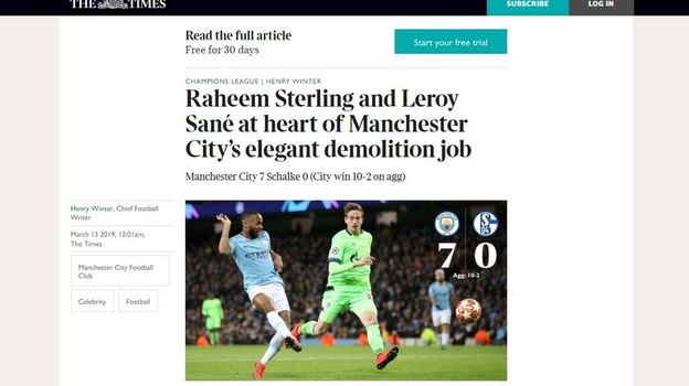 The Times: "Этим вечером для "Шальке" не было никакого спасения от Сане: он забивал, он создавал, он уничтожал. Сане настолько унизил бывшую команду, что "Шальке" в своем английском аккаунте публиковал GIF с расстроенными рейнджерами из сериала "Могучие рейнджеры" и отвечал Гари Линекеру: "Мы бы хотели посмотреть, как Тереза Мэй будет отбиваться от Сане".