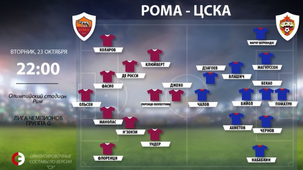 Лига чемпионов. Групповой турнир. Группа G. 23 октября. "Рома" – ЦСКА. 22.00 (мск)
