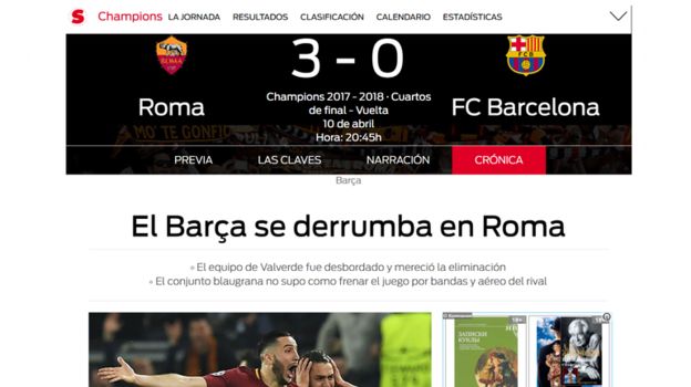 В третий раз подряд "Барселона" оказывается вне четверки лучших команд Европы. Пропустив три гола за весь сезон в Лиге чемпионов, каталонцы получили в Риме три мяча в свои ворота за 90 минут и отправились восвояси. "Рома" была лучше каталонцев от начала и до конца, тогда как сине-гранатовые провели худший матч в сезоне. Ночной кошмар "Барсы" и ее болельщиков.