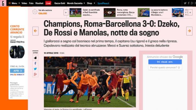 Бывший нападающий "Манчестер Сити" босниец Эдин Джеко – герой противостояния. Его гол на "Камп Ноу" позволил "Роме" сохранить минимальную надежду на выход в полуфинал, а в ответной встрече он открыл счет и заработал пенальти. Третий гол хозяев, который забил Костас Манолас, позволил Риму пережить невероятный футбольный вечер – празднование было таким долгим, что казалось, болельщики "Ромы" никогда не уйдут домой.