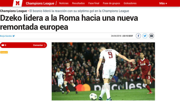 Шла 81-я минута, когда римляне наконец-то нашли дыру в красной обороне. Длинный заброс от Наингголана за спину Ловрена был пойман Джеко, он не простил "Ливерпуль". Седьмой гол боснийца в этой Лиге чемпионов вдохнул в его команду новую надежду. Он вывел "Рому" в четвертьфинал, забив в ответной игре "Шахтеру" (1:0), размочил счет на "Камп Ноу" – как оказалось, этот мяч стал ключевым в двухраундовом противостоянии. Отличился Джеко и сейчас.