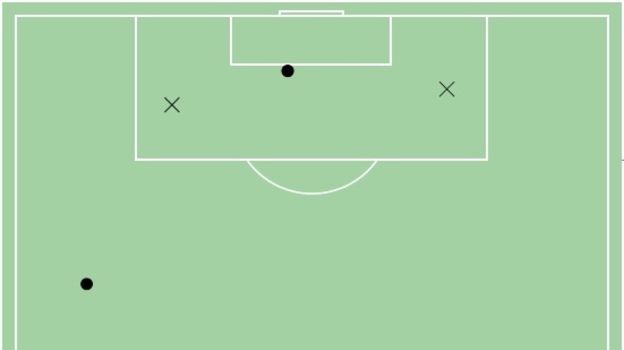 Для начала – сумма ТТД. Вот усредненные позиции армейской группы атаки на стадионе "Да Луш" – те, где они больше всего трудились по ходу матча.