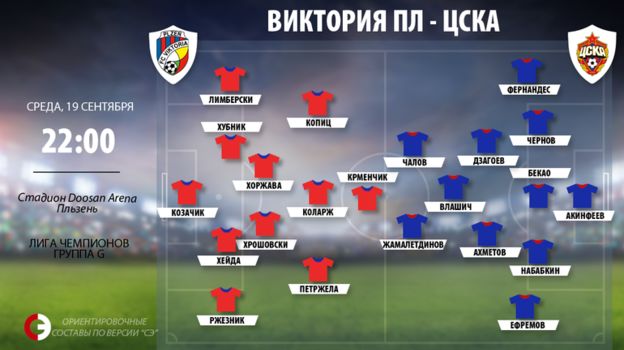 Лига чемпионов. Групповой турнир. 1-й тур. Группа G. 19 сентября. "Виктория" - ЦСКА. 22.00 (мск)