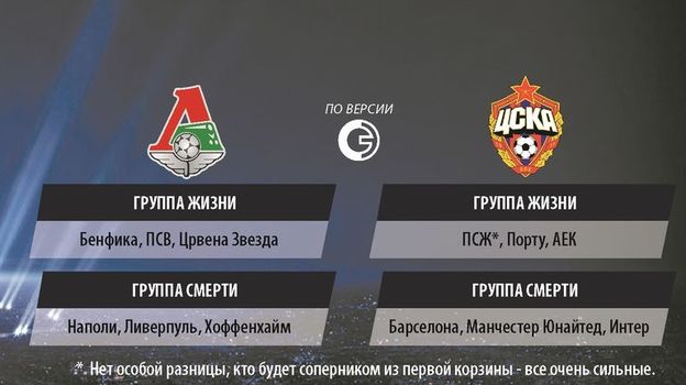 Армейцы находятся в третьей, а это значит, что с ними сыграют по меньшей мере два стопроцентных гранда. "Локомотив" на свое счастье оказался в корзине номер один, но и он имеет все шансы встретиться с топ-клубами – "Ливерпулем", "МЮ", "Боруссией", "Наполи", "Тоттенхэмом".