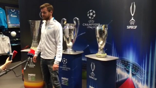 В Санкт-Петербурге представили главные еврокубковые трофеи - кубки Лиги чемпионов, Лиги Европы и Суперкубка Европы. Из желающих сфотографироваться с чашами выстроилось большая очередь на Невском проспекте. На презентации трофеев побывал обладатель Кубка УЕФА-2008 в составе сине-бело-голубых защитник "Зенита" Николас Ломбертс.