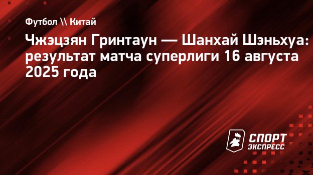 «Шанхай Шэньхуа» на выезде сыграл вничью с «Чжэцзян Гринтаун» в матче 21-го тура чемпионата Китая — 0:0.
