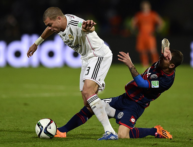 Да, с одной стороны – великий "Реал" с Криштиану Роналду, Бэйлом, Бензема и Хамесом Родригесом в основном составе. Но с другой – скромный "Сан-Лоренсо", восьмая команда Аргентины, самыми известными игроками которой являются 38-летний колумбиец Марио Йепес и бывший "москвич" Пабло Баррьентос. Угадайте, кто из этой пары создал момент уже на первой минуте?
