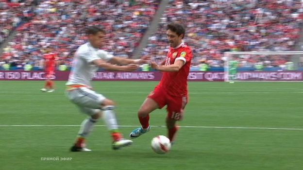 На 6-й минуте матча Кубка конфедераций Мексика – Россия арбитр Фахад Аль-Мирдаси не наказал мексиканцев 11-метровым ударом, когда в их штрафной упал Юрий Жирков. На видеоповторе видно, что защитник Эктор Морено делает движение ногой в направлении мяча, но в него не играет. И спустя мгновение происходит контакт ноги защитника с ногой Жиркова.