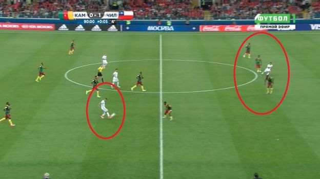 Момент очень похож на тот, что случился на исходе первого тайма, когда видеоарбитры (француз Клеман Тюрпен, серб Милован Ристич и сенегалец Маланг Дьедиу) посоветовали Скомине отменить взятие ворот Камеруна. И сейчас могло показаться, что плечом (но не ногами) Алексис Санчес оказался ближе к линии ворот, чем кто-либо из камерунских защитников.