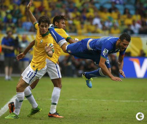 Салвадор (Бразилия). Кубок конфедераций. Групповой турнир. 3-й тур. Группа A. Италия – Бразилия – 2:4 (0:1). Голы: Данте, 45+1 (0:1). Джаккерини, 51 (1:1). Неймар, 55 (1:2). Фред, 66 (1:3). Кьеллини, 71 (2:3). Фред, 89 (2:4). Фото AFP, REUTERS