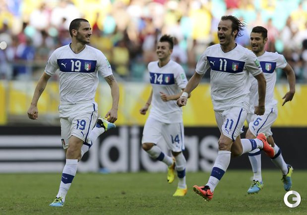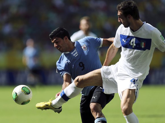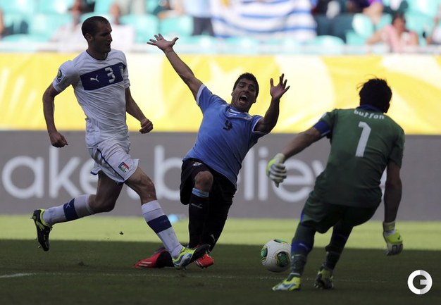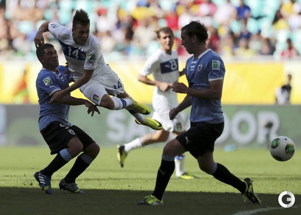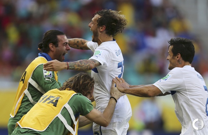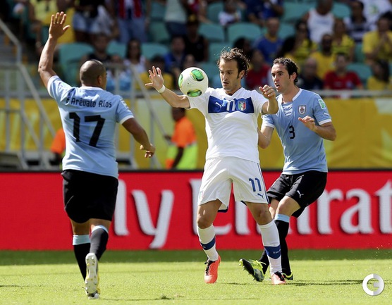 Салвадор (Бразилия). Кубок конфедераций. За 3-е место. Италия – Уругвай – 2:2 (1:0, 1:2, 0:0). Пенальти – 3:2. Голы: Астори, 24 (1:0). Кавани, 58 (1:1). Диаманти, 73 (2:1). Кавани, 78 (2:2). Удаление: Монтоливо, 110.Фото REUTERS