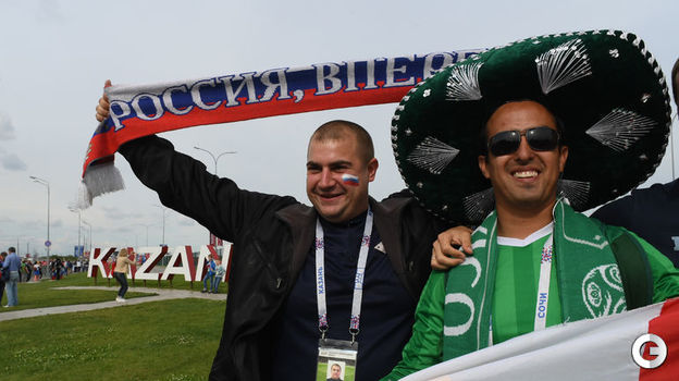 Что окружает решающий матч группового турнира Кубка конфедераций-2017 между сборными России и Мексики. Фоторепортаж спецкора "СЭ" из Казани, где на одном из зданий разместили портрет рубиновского сборника Руслана Камболова (слово в ответ на граффити Криштиану Роналду).