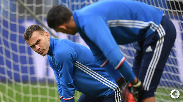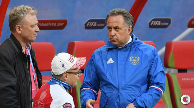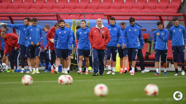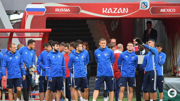 Сборная России провела тренировку на стадионе "Казань Арена" в преддверии решающего матча группового турнира Кубка конфедераций с Мексикой. На занятие приехал вице-премьер РФ, президент РФС Виталий Мутко. Все сборники работали в общей группе.
