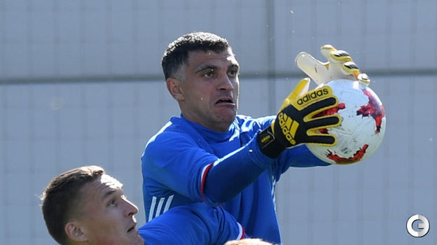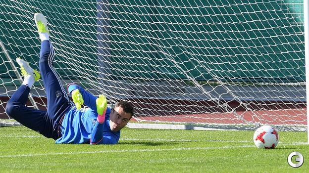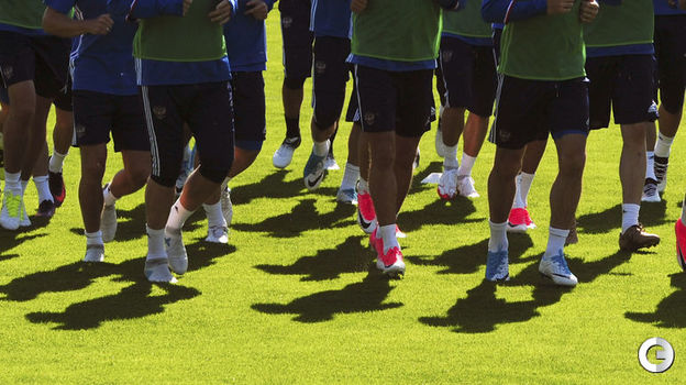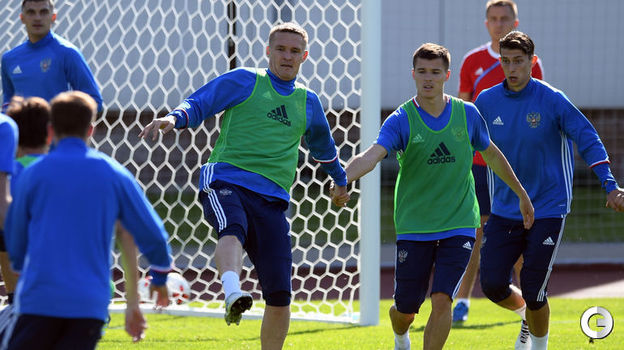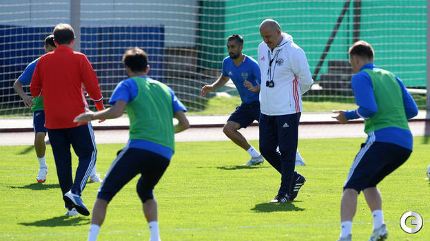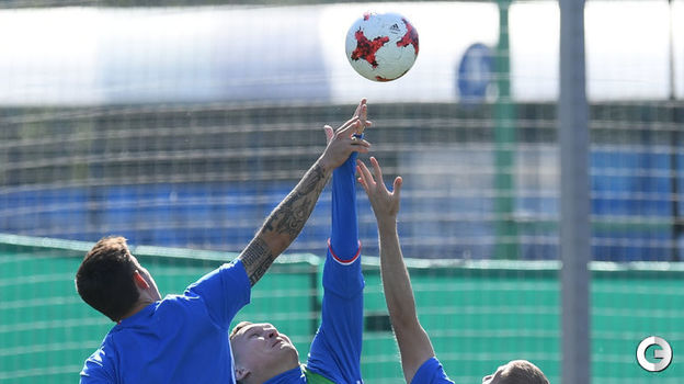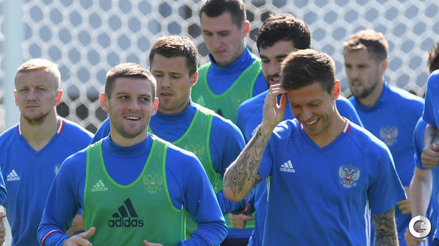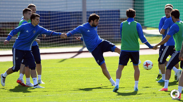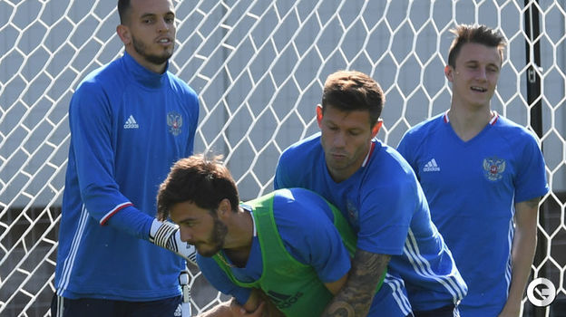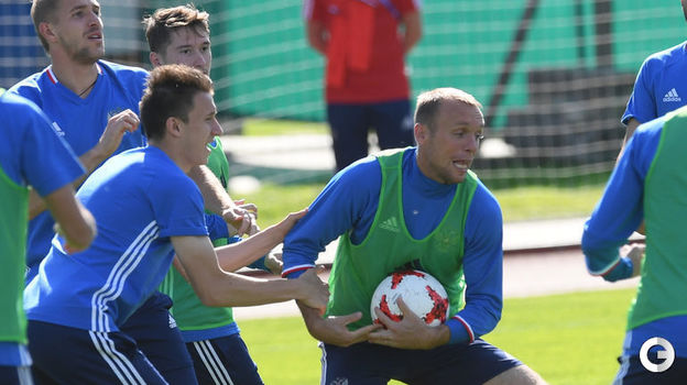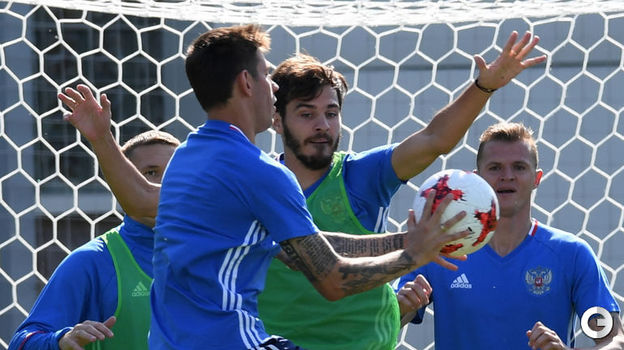 Футболисты сборной России провели тренировку на стадионе академии "Зенита". В занятии приняли участие все игроки, попавшие в заявку национальной команды на Кубок конфедераций-2017. В открытой для прессы части тренировки игроки передавали мяч руками, а забивали - головой. Завтра команда проведет стартовый матч Кубка с Новой Зеландией.