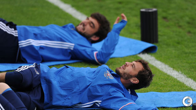 Сборная России: в пасмурной Москве в солнцезащитных очках