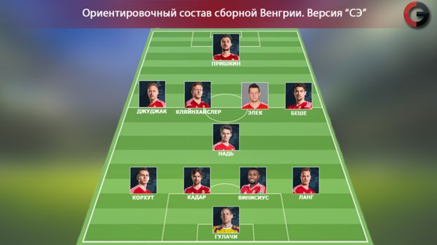 Дальше выбор – выпускать четырех хавбеков плюс одного Смолова либо трех полузащитников и двух форвардов. На тренировках, знаю, тестировался вариант 5-1-3-1 с участием Ерохина, но похоже, Черчесов все-таки вернется к схеме с парой нападающих, которая вроде бы осиротела с отъездом Дзюбы. Осталось понять, кто будет вторым – Бухаров или Полоз. Шансы Большого Бу выйти в стартовом составе выглядят предпочтительнее. Предположу, что против Венгрии каждый получит по тайму, да и вариант с одним форвардом тоже в какой-то момент матча можем увидеть (разрешено шесть замен).