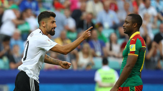 К тому моменту немцы вели 1:0 – сразу после перерыва они провели изумительную атаку. Дракслер пяткой отдал пас Демирбаю, при этом мяч прошел между ногами камерунца, а полузащитник "Хоффенхайма" пробил с линии штрафной точно в "девятку".
