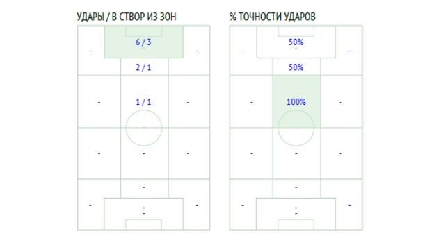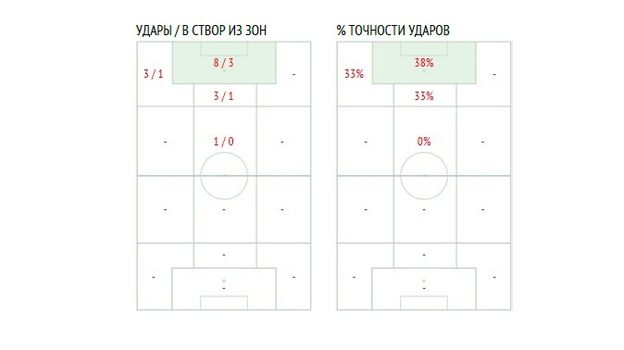 83% – почти все атаки сборной со "стандартов" заканчивались ударами, и эту статистику нужно подчеркнуть жирным. Судя по всему, у нашей команды появилось секретное действенное оружие – и во время трансляции было заметно, что наши назубок выучили все заготовки при подачах штрафных и угловых. Цифры это подтверждают: команда Черчесова нанесла 15 ударов, 5 из которых – в результате "стандартов". Гол Васин забил после розыгрыша углового.