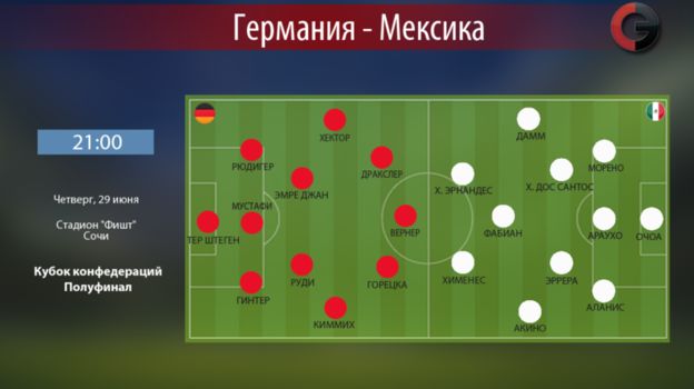 Полуфинал Кубка конфедераций Германия – Мексика пройдет в четверг, 29 июня, на стадионе "Фишт" в Сочи. Игра начнется в 21.00 по московскому времени. "СЭ" проведет трансляцию матча Германия – Мексика.