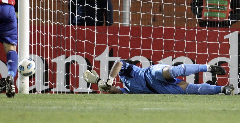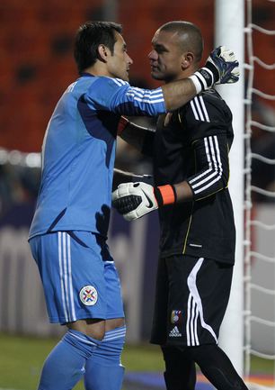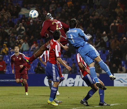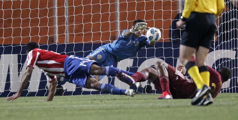 Футбол. Ла-Плата. Кубок Америки. 1/2 финала. Парагвай - Венесуэла - 0:0 (0:0, 0:0, 0:0, 0:0) Пенальти - 5:3. Удаление: Сантана, 102 (вторая ж.к.) (П). В финале Парагвай сыграет с Уругваем. Решающий матч состоится в воскресенье. Парагвай стал первой командой в истории Кубка Америки, которая не добилась ни одной победы в основное время и вышла в финал. Фото REUTERS