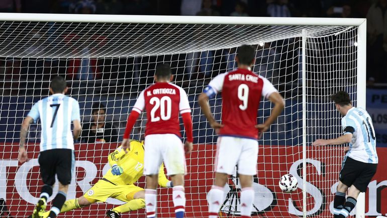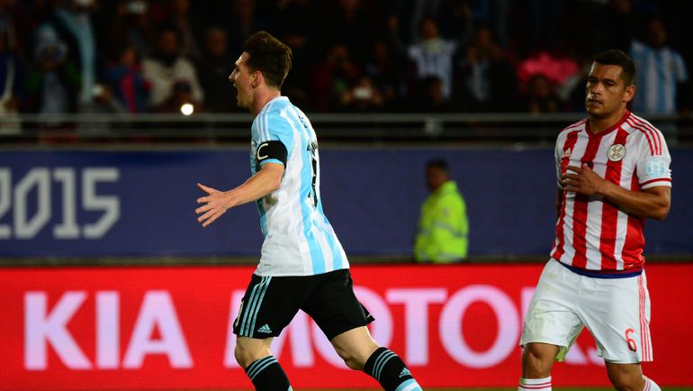 Кубок Америки-2015. Групповой турнир. 1-й тур. Группа B. Аргентина – Парагвай – 2:2 (2:0). Голы: Агуэро, 29 (1:0). Месси, 36 - с пенальти (2:0). Вальдес, 60 (2:1). Барриос, 90 (2:2). Фото AFP, REUTERS