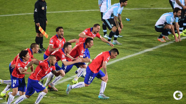 Кубок Америки-2015. Финал. Чили – Аргентина – 0:0. Пенальти - 4:1. Серия пенальти: М. Фернандес - 1:0. Месси - 1:1. Видаль - 2:1. Игуаин - 2:1 (выше). Арангис - 3:1. Банега - 3:1 (вратарь). Санчес - 4:1. Фото AFP, REUTERS