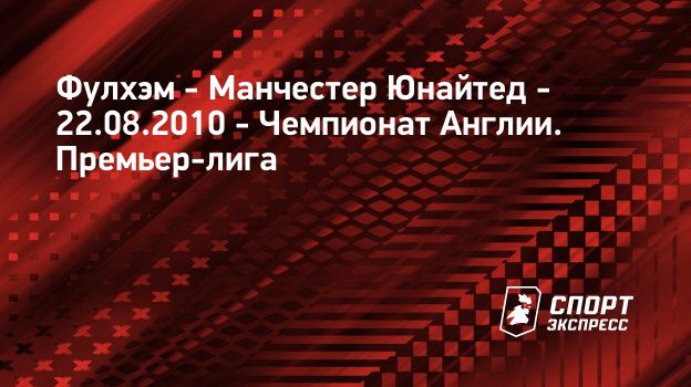 "СЭ" рад приветствовать всех любителей футбола! Здесь вас ждет онлайн-трансляция матча Фулхэм (Лондон) – Манчестер Юнайтед (Манчестер). Чемпионат Англии. Премьер-лига, 2-й тур Матч пройдет 22 августа 2010 года на стадионе Крэйвен Коттедж (Лондон, Англия). Начало - в 19:00 по московскому времени.