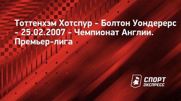 "СЭ" рад приветствовать всех любителей футбола! Здесь вас ждет онлайн-трансляция матча Тоттенхэм Хотспур (Лондон) – Болтон Уондерерс (Болтон). Чемпионат Англии. Премьер-лига, 28-й тур Матч пройдет 25 февраля 2007 года на стадионе Тоттенхэм Хотспур Стэдиум (Лондон, Англия). Начало - в 18:00 по московскому времени.