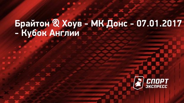 "СЭ" рад приветствовать всех любителей футбола! Здесь вас ждет онлайн-трансляция матча Брайтон & Хоув (Брайтон) – МК Донс (Милтон Кейнс). Кубок Англии, 1/32 финала Матч пройдет 7 января 2017 года на стадионе Фалмер Стэдиум (Брайтон, Англия). Начало - в 18:00 по московскому времени.