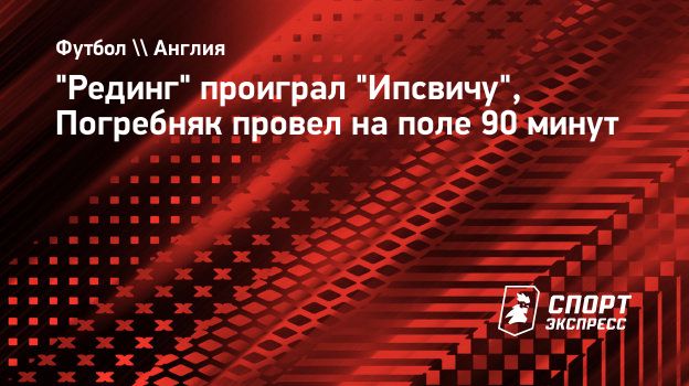 "Рединг" проиграл "Ипсвичу", Погребняк провел на поле 90 минут