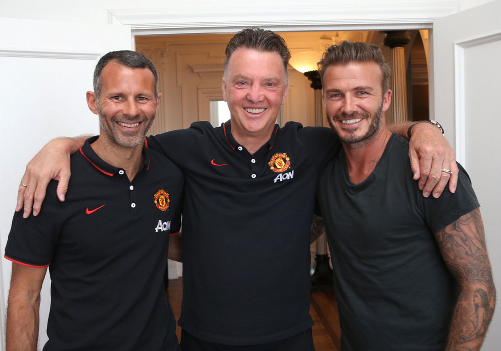 Экс-капитан "Манчестер Юнайтед" Дэвид Бекхэм посетил сбор своей бывшей команды в США, сообщает официальный сайт клуба. Полузащитник встретился с новым главным тренером "МЮ" Луи ван Галом и его помощником Райаном Гиггзом. В ходе турне по США "красные дьяволы" проведут товарищеский матч против "Лос-Анжелес Гэлакси", за который Бекхэм выступал в период с 2007 по 2012 год.
