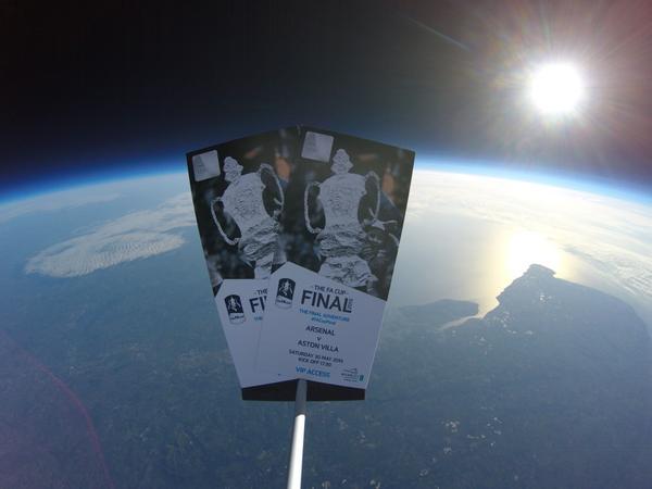 Необычную акцию провела за несколько дней до финала Кубка Англии Футбольная ассоциация страны. Утром 27 мая со стадиона "Уэмбли" в небо взмыл воздушный шар с двумя билетами на решающий поединок между "Арсеналом" и "Астон Виллой". С помощью специального устройства чиновники и болельщики могли следить за полетом. Спустя час шар взорвался на высоте 29 километров, и вместе с его остатками билеты упали на землю в районе деревушки Брод Оук (в переводе "Широкий Дуб").