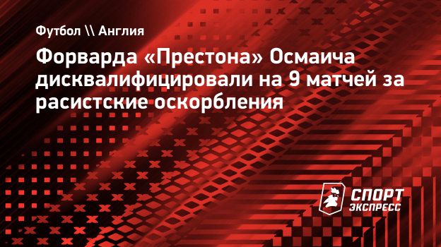 Нападающий «Престона» Милутин Осмаич получил 9-матчевую дисквалификацию по обвинению в расистских оскорблениях, сообщила Футбольная ассоциация Англии.