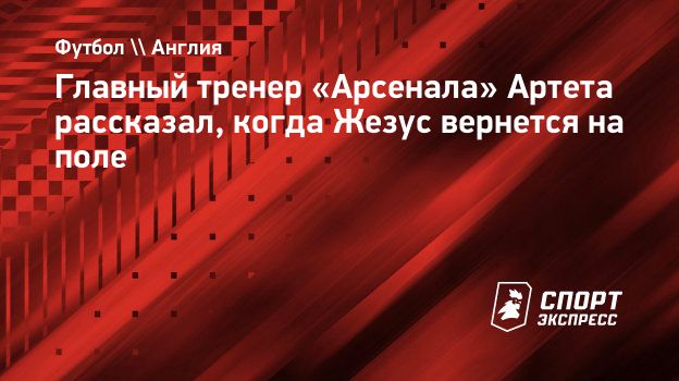 Главный тренер «Арсенала» Артета рассказал, когда Жезус вернется на поле