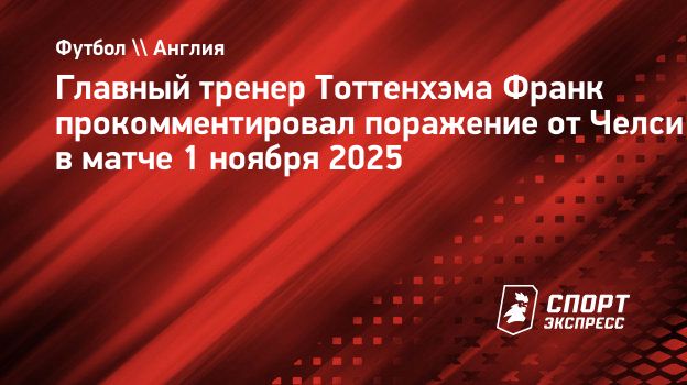 Главный тренер «Тоттенхэма» Томас Франк прокомментировал поражение от «Челси» (0:1) в домашнем матче 10-го тура чемпионата Англии.