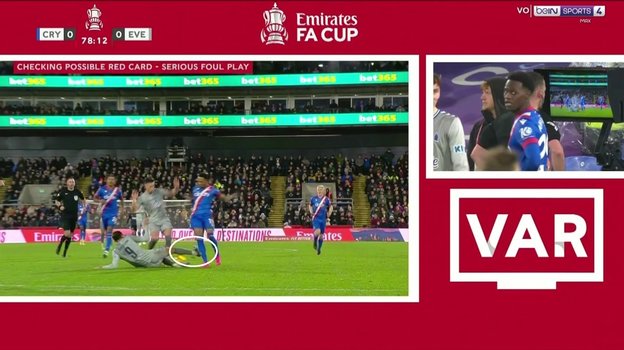 На 79-й минуте матча 3-го раунда Кубка Англии «Кристал Пэлас» — «Эвертон» (0:0) арбитр Крис Кавана после вмешательства видеоассистентов и просмотра видеозаписи показал красную карточку Доминику Калверт-Льюину. Так судья в итоге оценил действия нападающего гостей, который сфолил в борьбе с Натаниэлом Клайном.