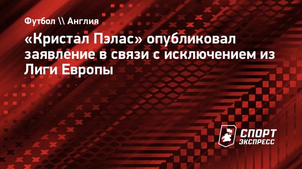 Пресс-служба «Кристал Пэлас» опубликовала заявление руководство клуба после того, как УЕФА принял решение исключить команду из числа участников Лиги Европы.