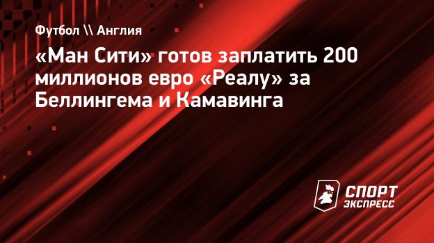 По информации источника, «Манчестер Сити» готов предложить «Реалу» 200 миллионов евро за подписание футболистов: 150 миллионов евро за Беллингема и 50 миллионов евро за Камавинга.