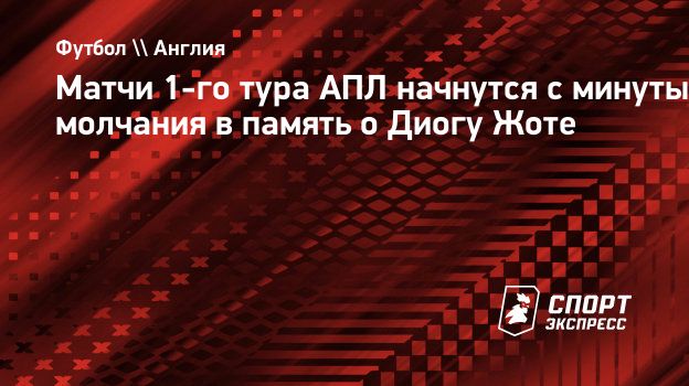 Матчи первого тура АПЛ сезона-2025/26 начнутся с минуты молчания в связи с гибелью нападающего «Ливерпуля» Диогу Жоты, сообщает BBC.