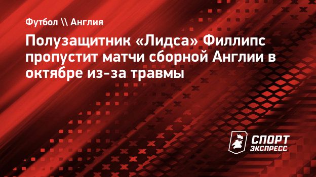 Полузащитник «Лидса» Филлипс пропустит матчи сборной Англии в октябре из-за травмы