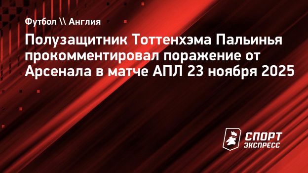 Полузащитник «Тоттенхэма» Жоау Пальинья прокомментировал поражение от «Арсенала» (1:4) в матче 12-го тура чемпионата Англии.