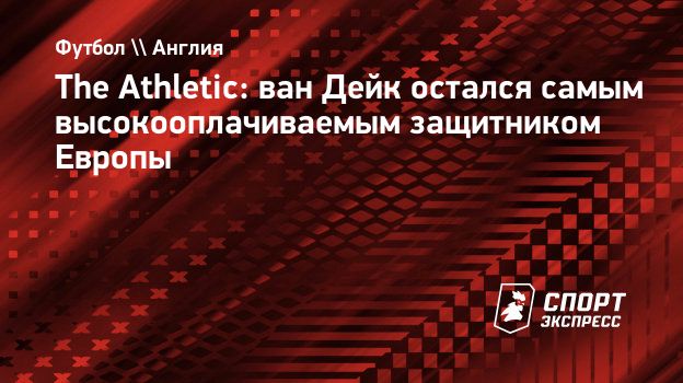The Athletic: ван Дейк остался самым высокооплачиваемым защитником Европы