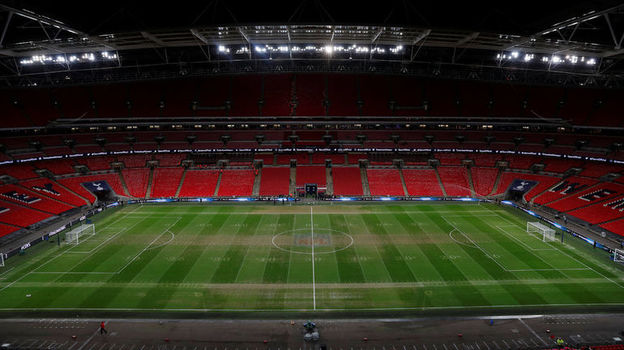 Матч 10-го тура чемпионата Англии между "Тоттенхэмом" и "Манчестер Сити" в Лондоне на стадионе "Уэмбли" состоялся в непривычной обстановке. На поле нанесена разметка для американского футбола.