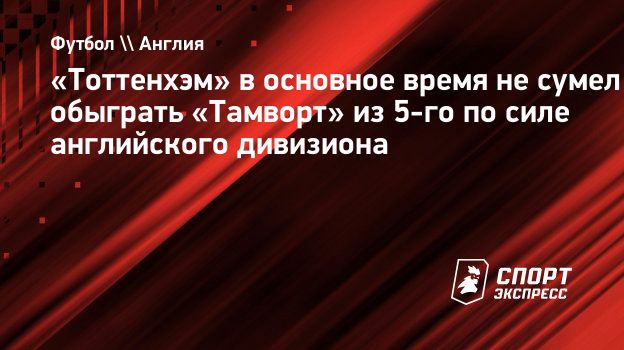 «Тоттенхэм» в основное время не сумел обыграть «Тамворт» из 5-го по силе английского дивизиона