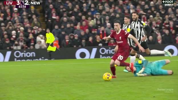 В том моменте вратарь Мартин Дубравка пытался в падении дотянуться до мяча рукой и остановить проход Диогу Жоты. Если голкипер и коснулся локтем ноги соперника, то контакт получился минимальным. После этого португалец сделал еще два шага, решил упасть, оказался на газоне и заработал пенальти.