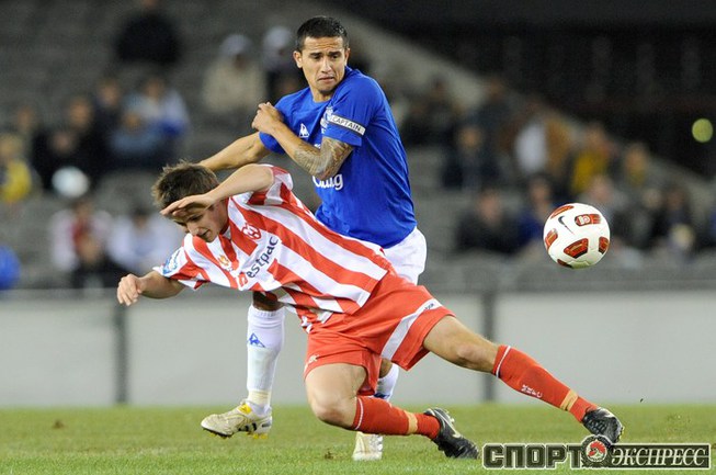 14.07.2010. Мельбурн. Футбол. Товарищеский матч. "Эвертон" - "Сидней" - 1:0. В составе "Эвертона" на поле вышел россиянин Динияр Билялетдинов. Фото AFP