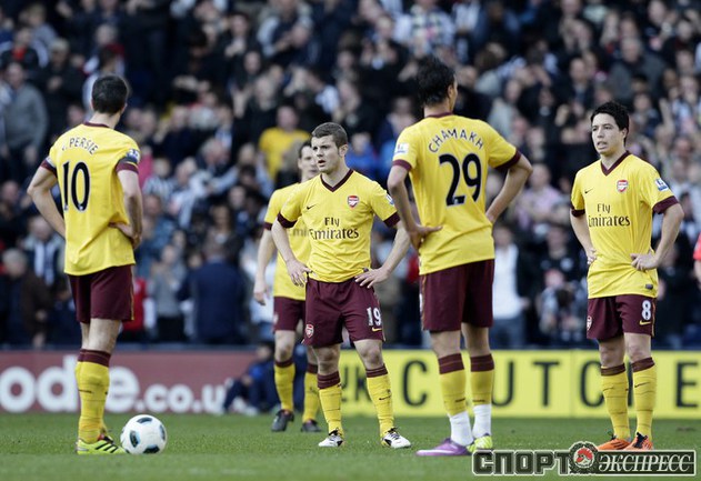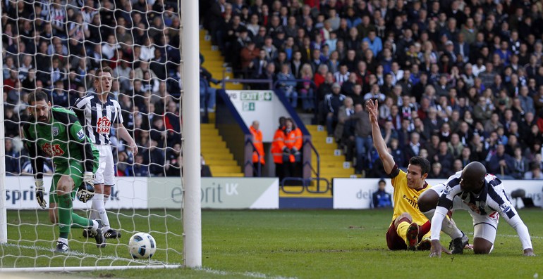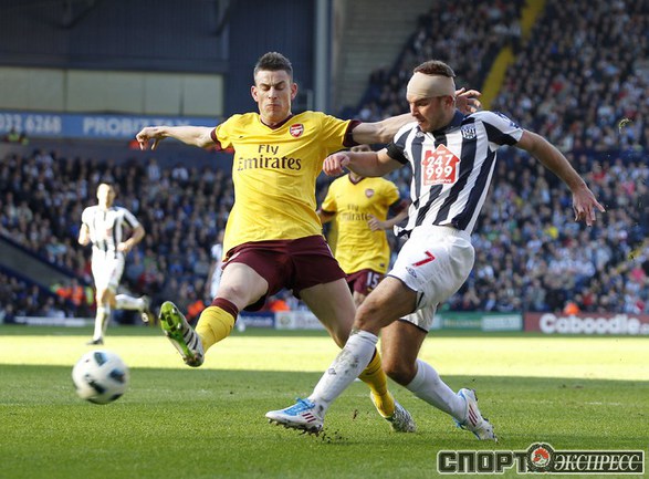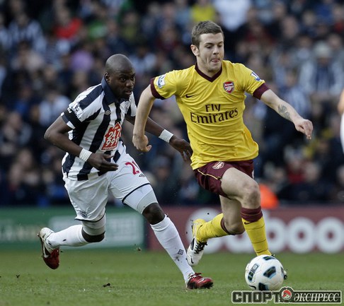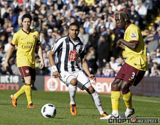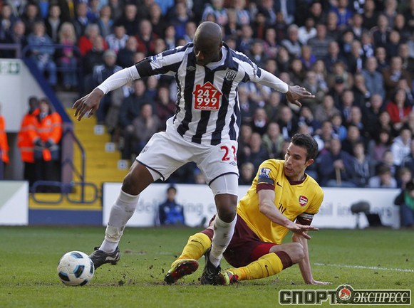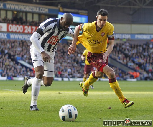 Чемпионат Англии. Премьер-лига. 30-й тур Футбол. "Вест Бромвич" - "Арсенал" - 2:2 (1:0). Голы: Рид, 3 (1:0). Одемвингие, 58 (2:0). АРШАВИН, 70 (2:1). Ван Перси, 78 (2:2). Фото AFP