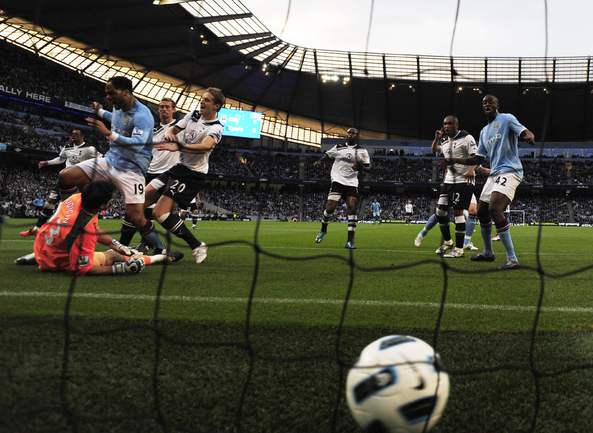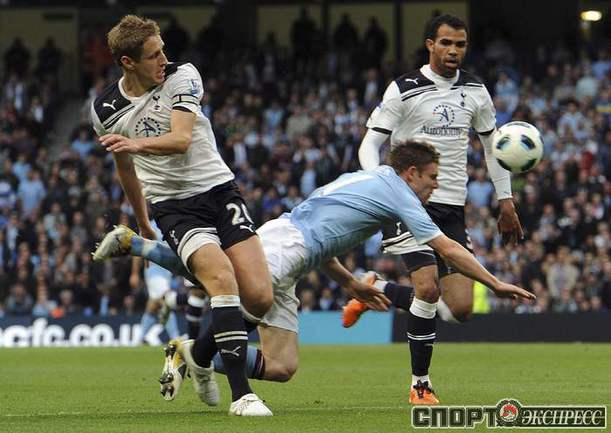 Чемпионат Англии. Премьер-лига. "Манчестер Сити" – "Тоттенхэм" – 1:0 (1:0). Гол: Крауч, 30 – в свои ворота. Благодаря этой победе "Манчестер Сити" стал недосягаемым для идущего пятым "Ливерпуля" и гарантировал себе место в Лиге чемпионов. Фото AFP