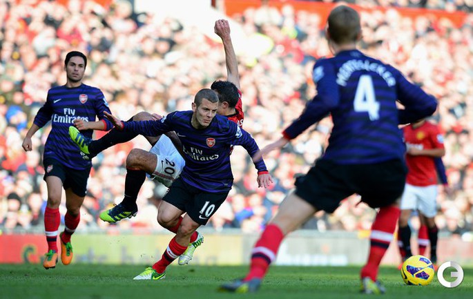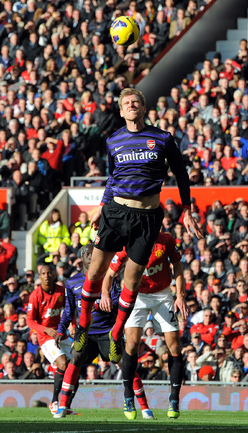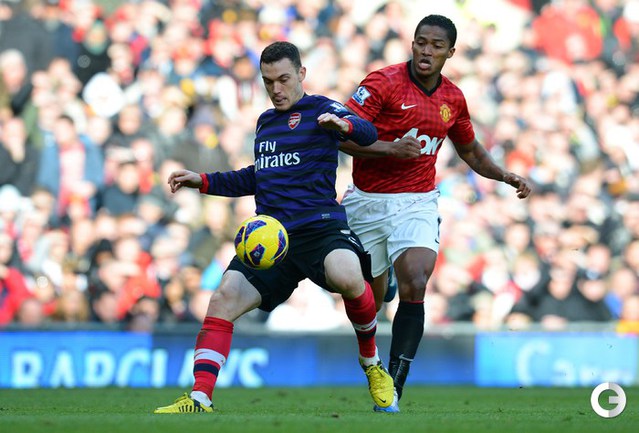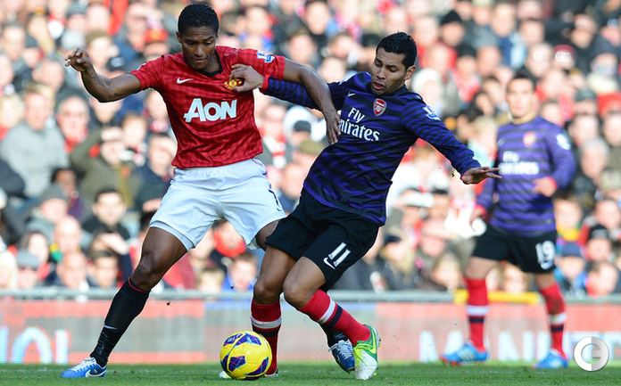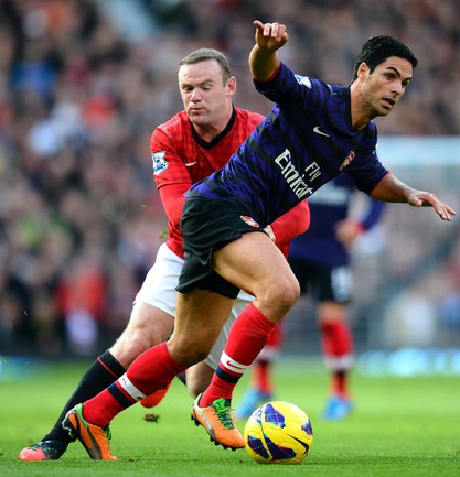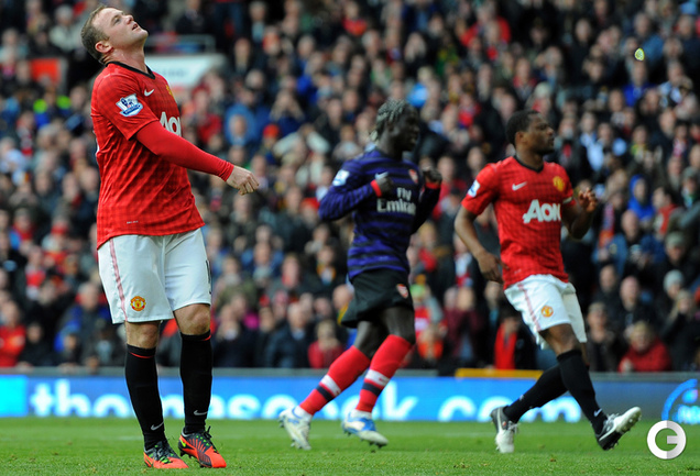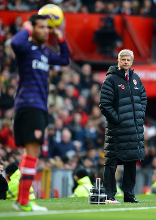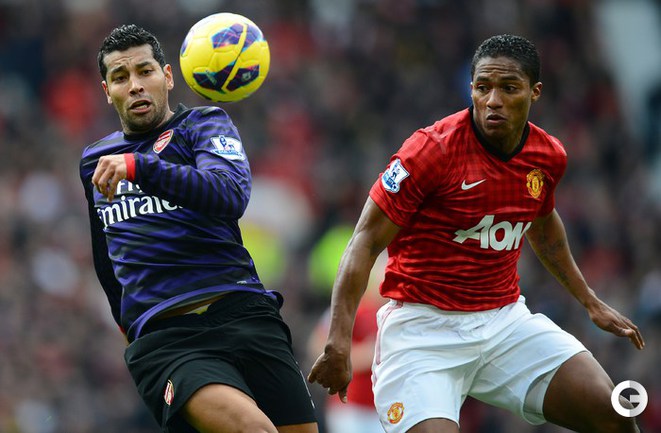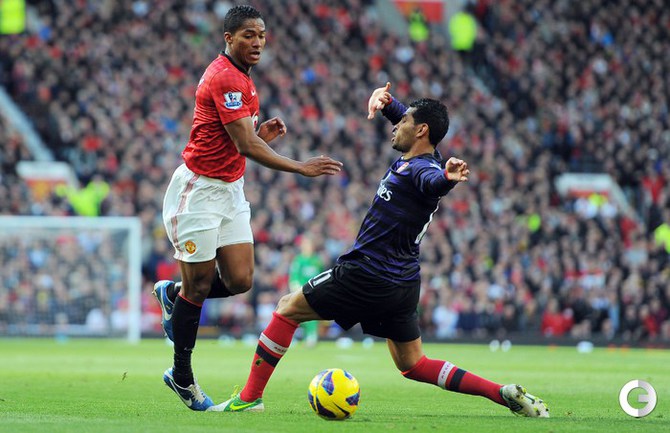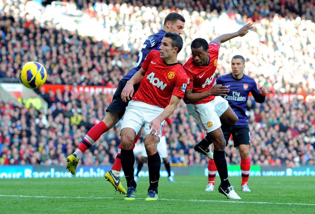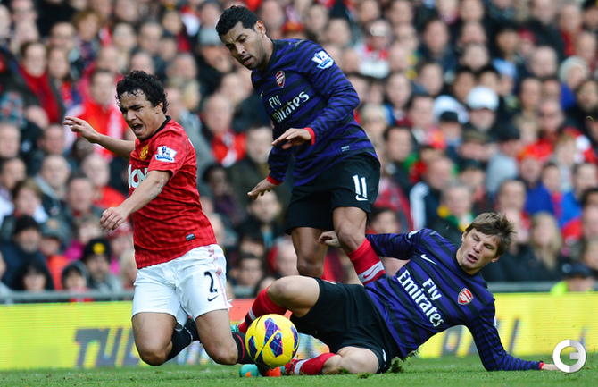 Футбол. Чемпионат Англии. Премьер-лига. 10-й тур. "Манчестер Юнайтед" - "Арсенал" - 2:1 (1:0). Голы: Ван Перси, 3 (1:0). Эвра, 67 (2:0). Санти Касорла, 90+4 (2:1). Нереализованный пенальти: Руни ("Манчестер Юнайтед"), 45+1 (мимо). Российсий форвард "канониров" Андрей Аршавин вышел на замену на 82-й минуте, когда его команда уже была в меньшинстве и уступала в два мяча. Буквально в первом игровом эпизоде Аршавин получил желтую карточку. Фото AFP